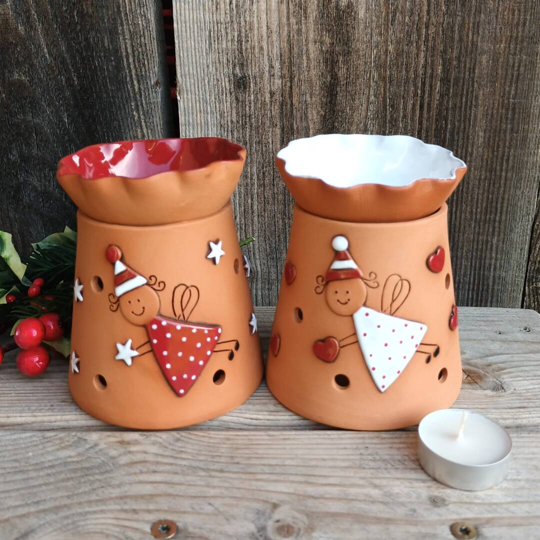 Unique ceramic angel oil burner, perfect for essential oils and wax melts. Available in red or white.
