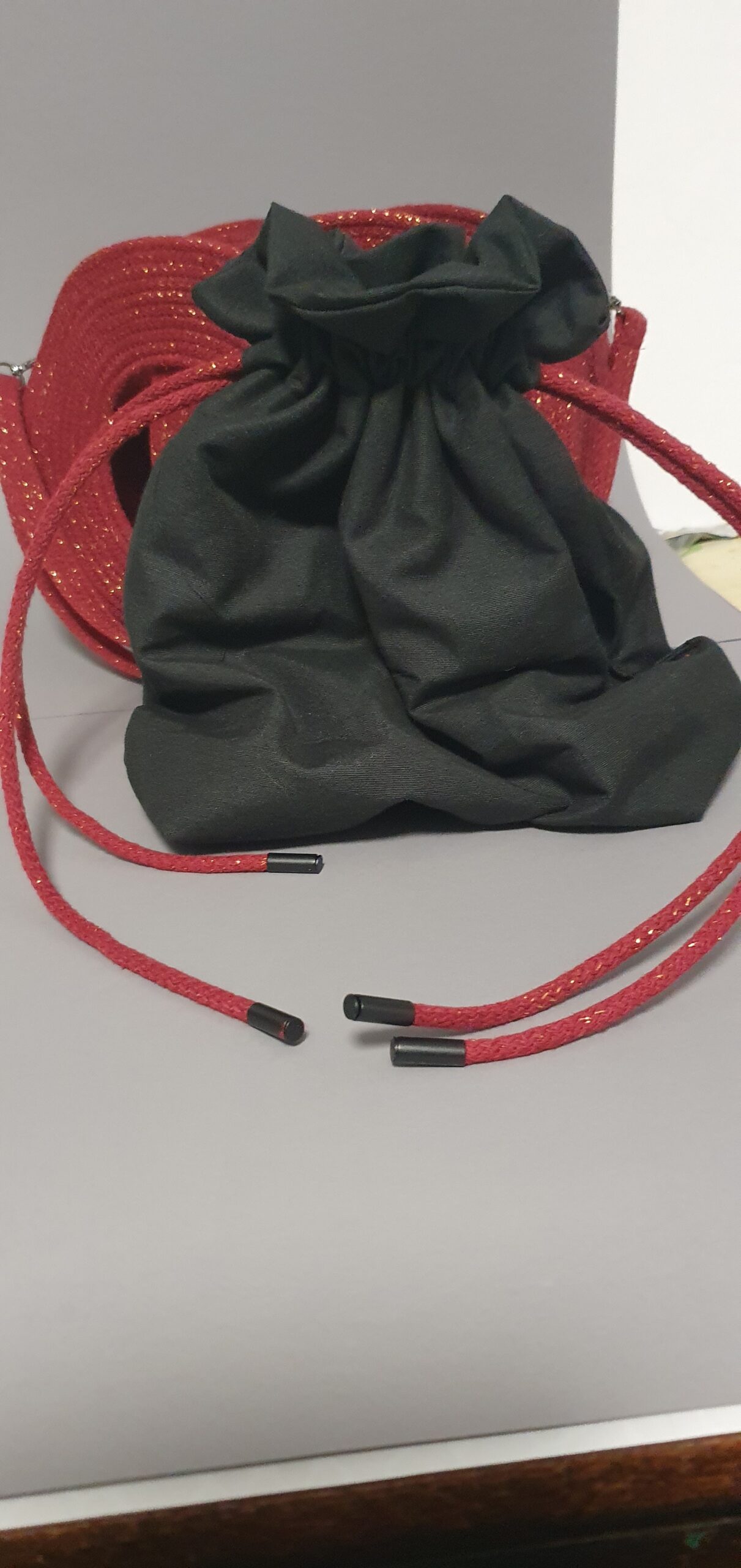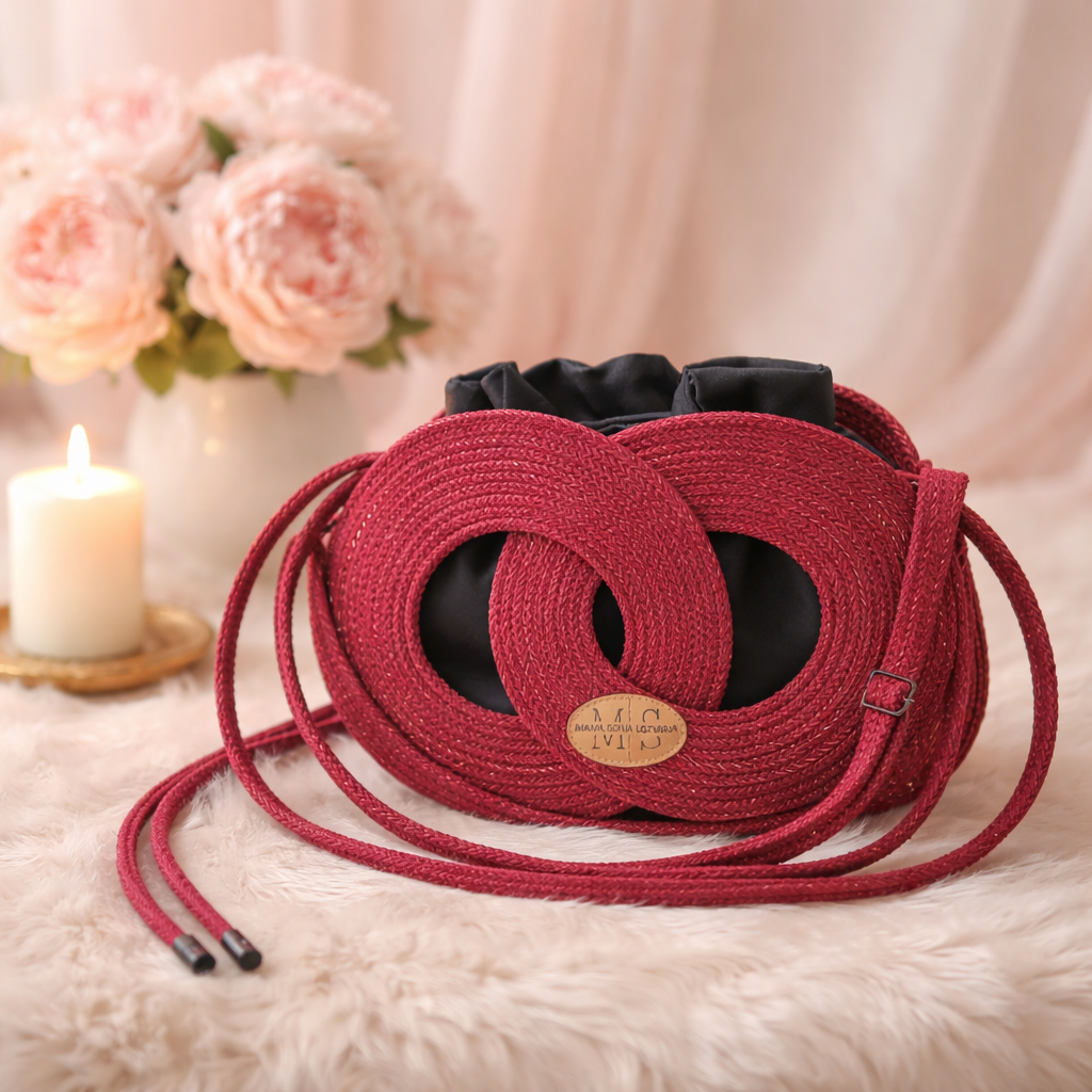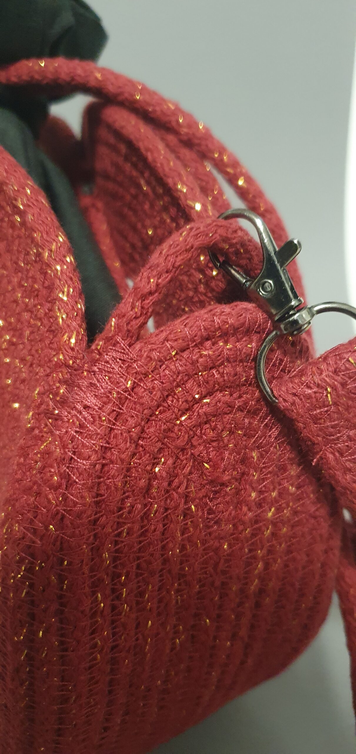 Rdeča torbica z zlatimi blešcicami, udobna, uporabna in lahka za vzdrževanje.